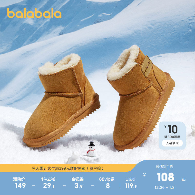 巴拉巴拉童鞋儿童雪地靴男童女童中筒靴加绒加厚潮流冬棉靴防泼水