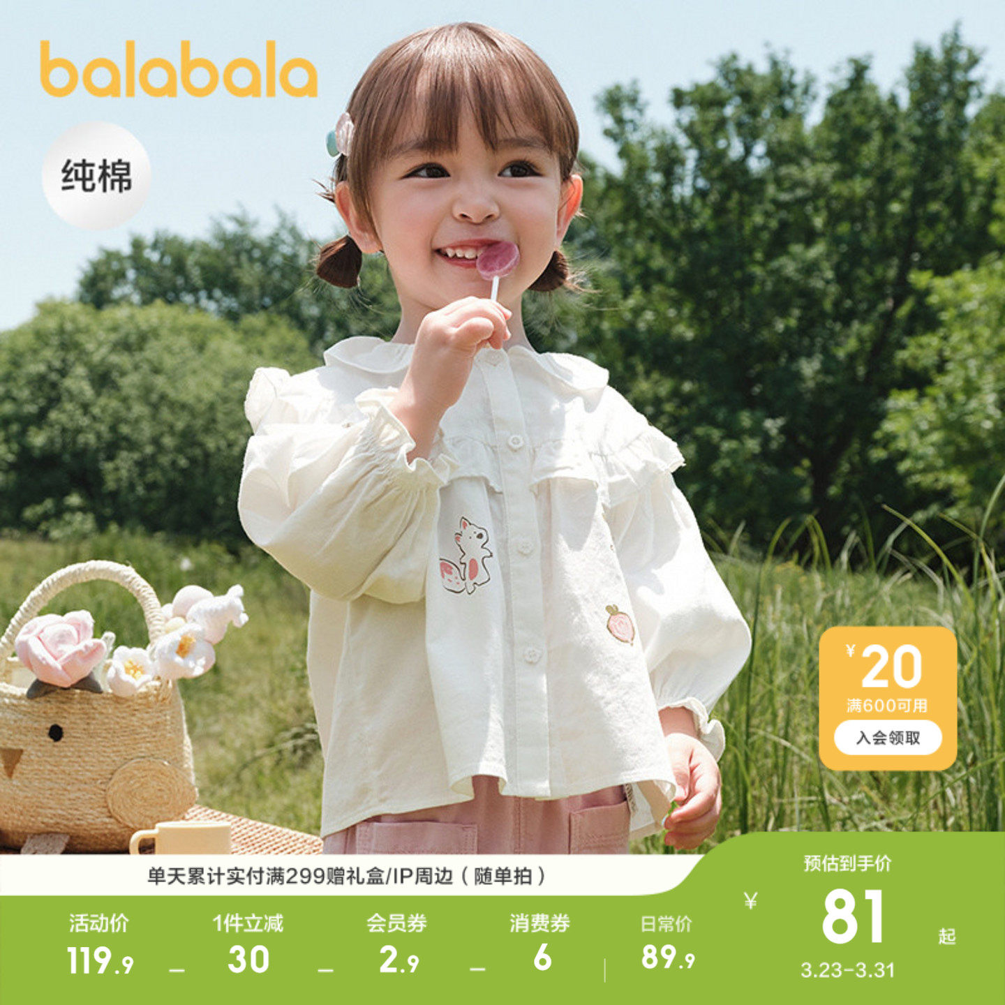 巴拉巴拉童装宝宝长袖衬衫纯棉印花上衣女童春装2026休闲甜美时尚