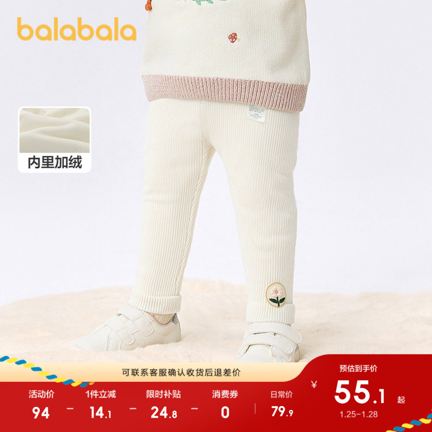 巴拉巴拉童装婴儿长裤加绒打底裤女童宝宝裤子2025秋冬装新款保暖