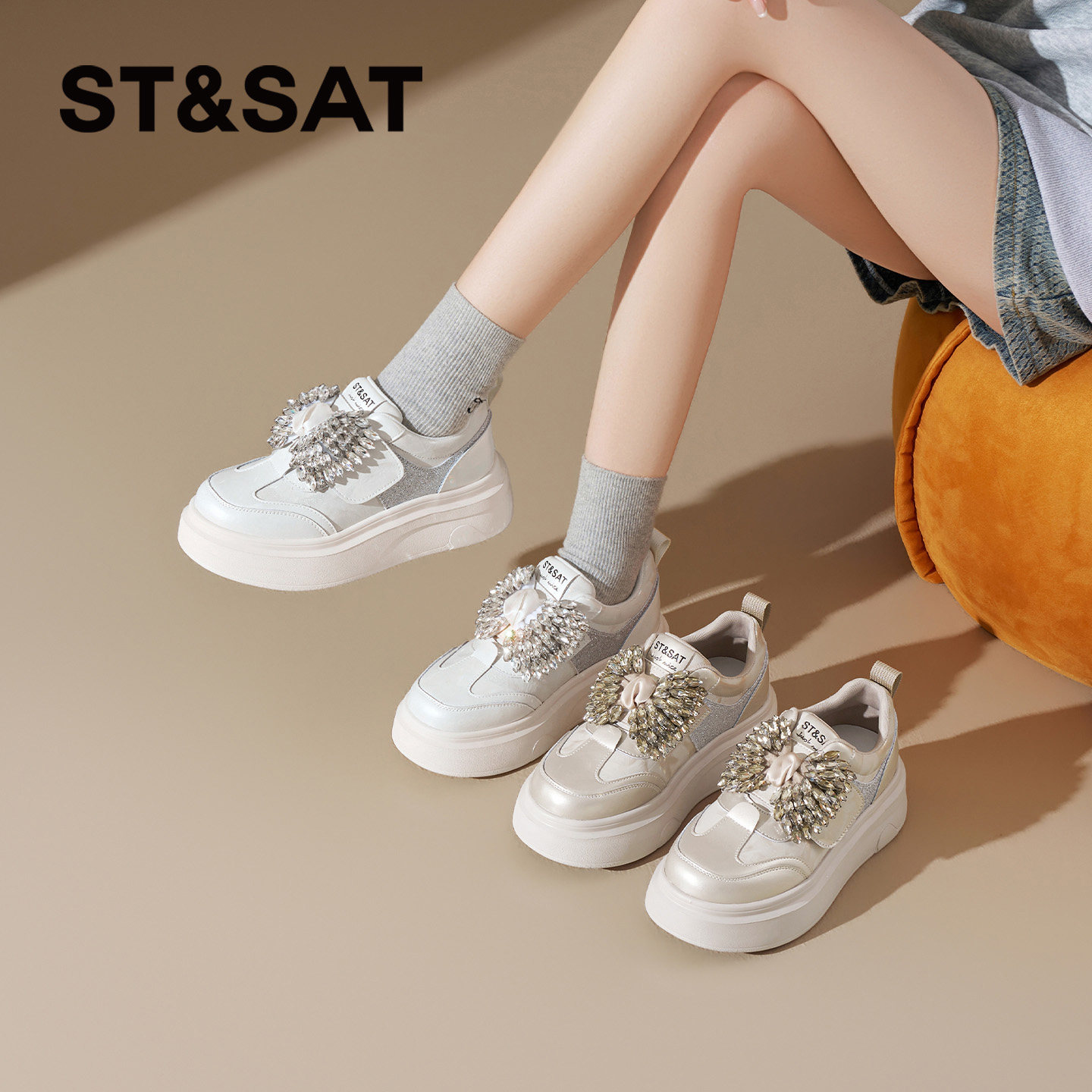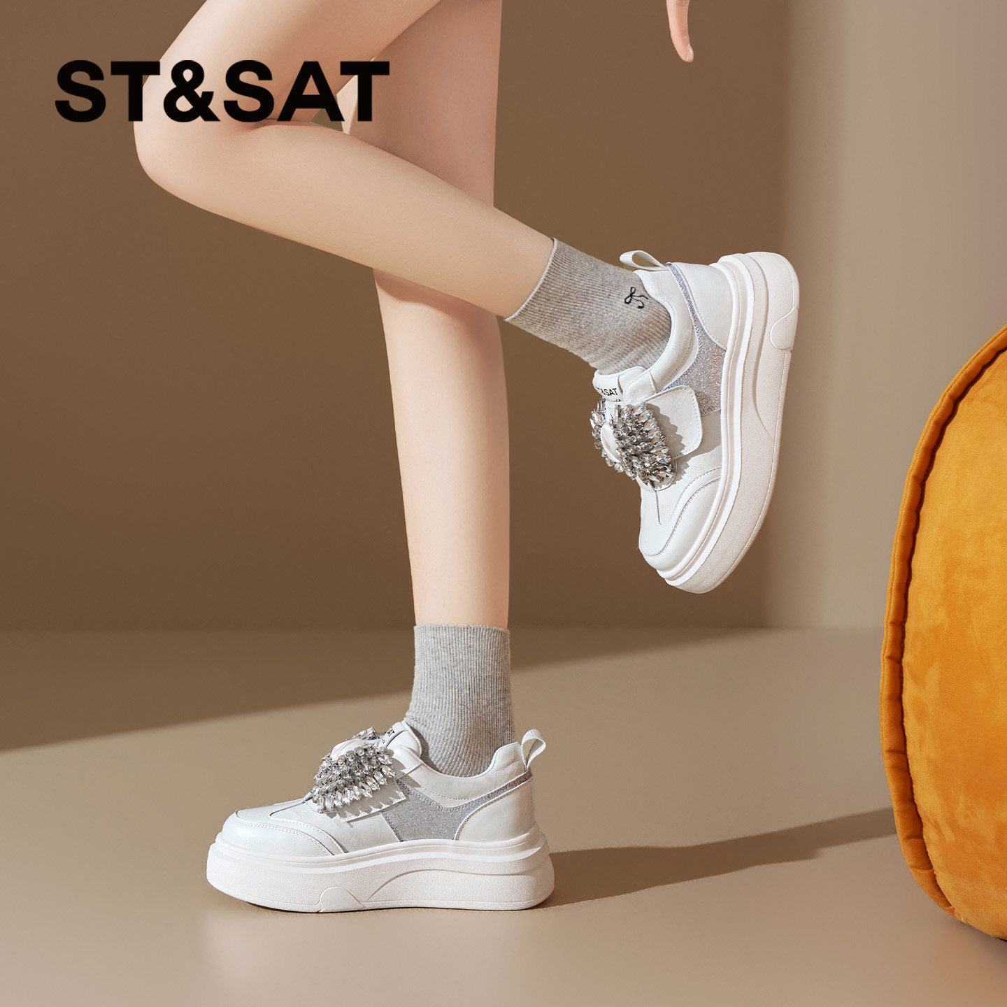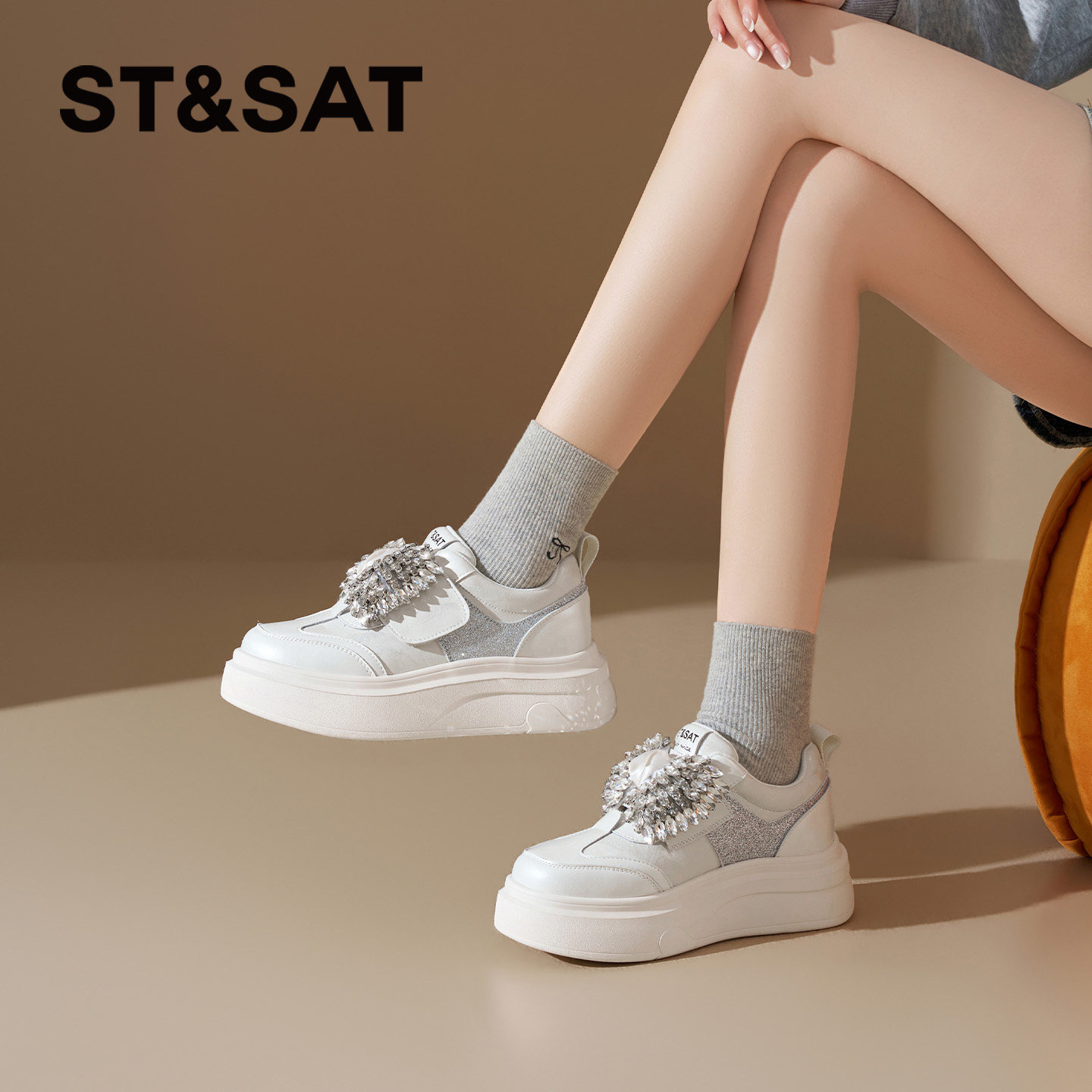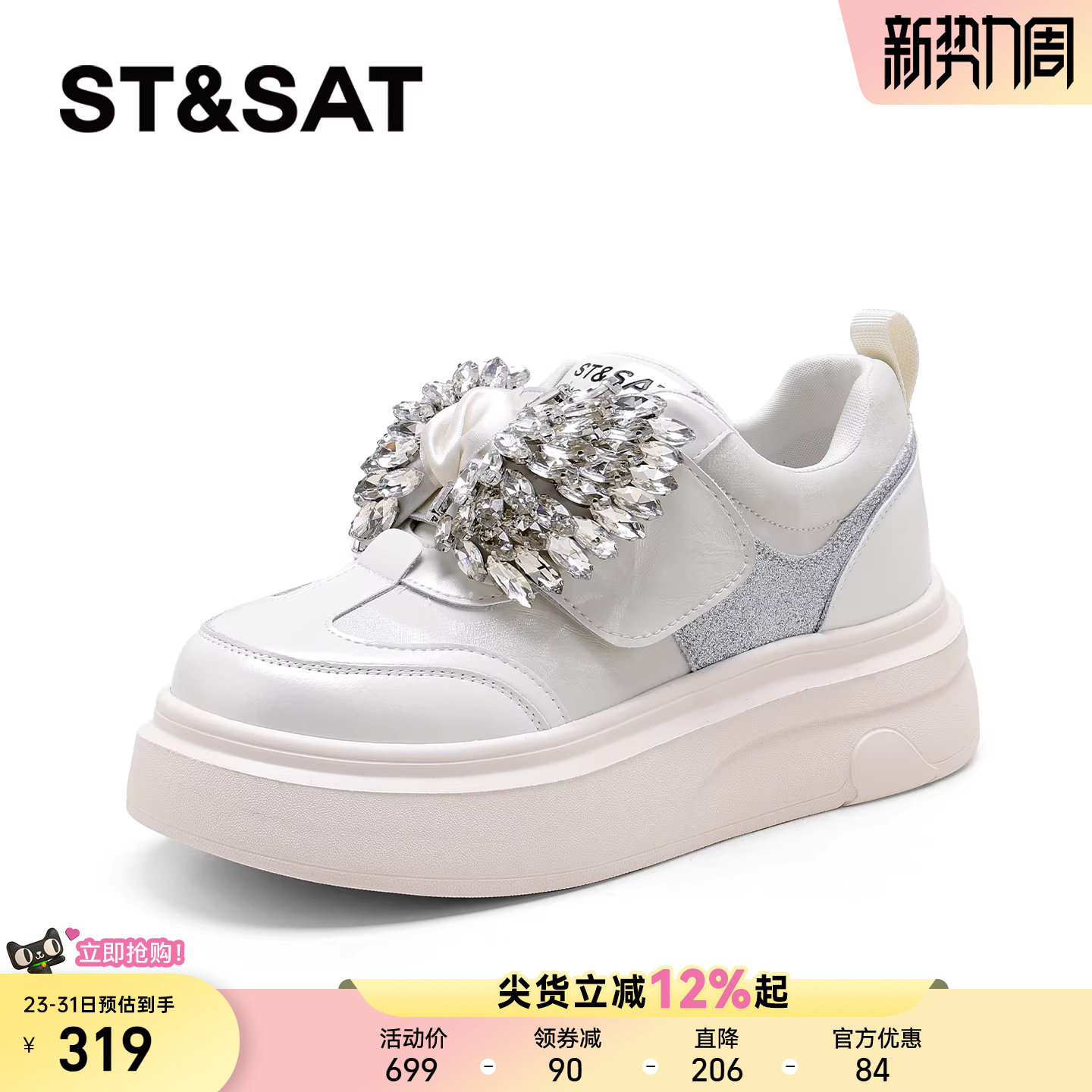 星期六水钻厚底小白鞋女款2026新款韩系松糕底休闲运动鞋厚底女鞋