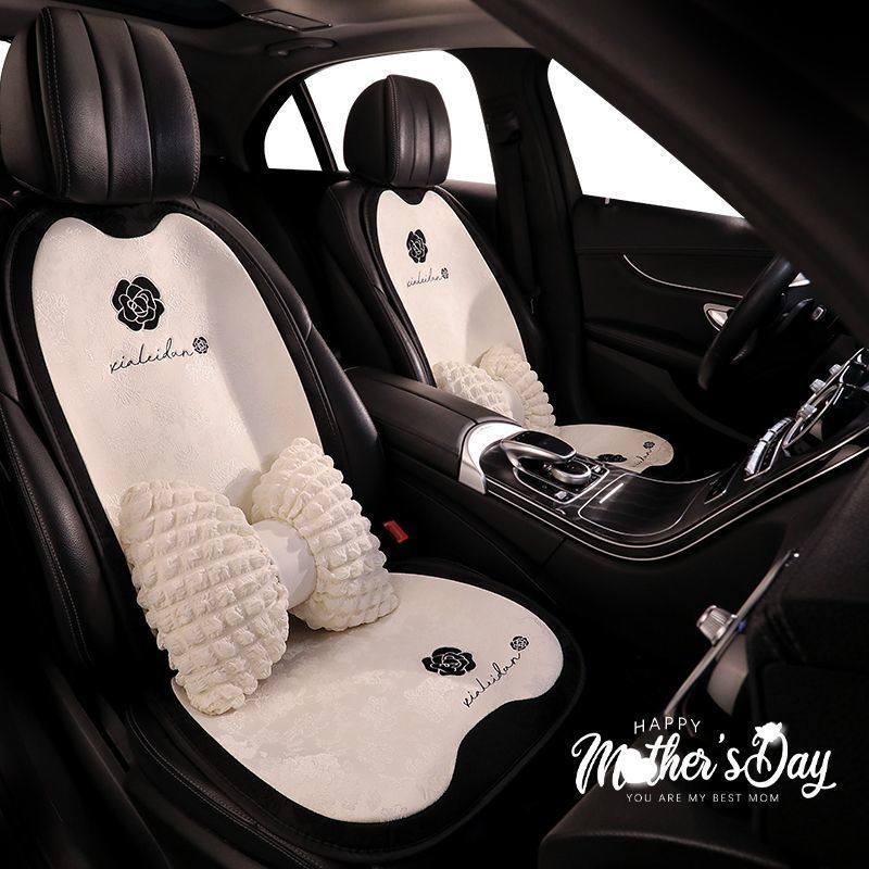 山茶花女神款汽车坐垫四季通用高级感网红轻奢国风座椅套半包座垫