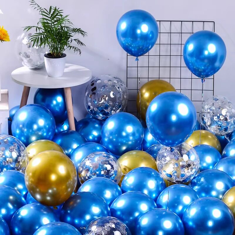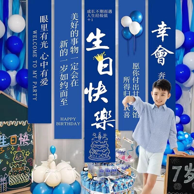 蓝色主题生日气球男孩周岁儿童宝宝派对氛围装饰场景布置亮片成长