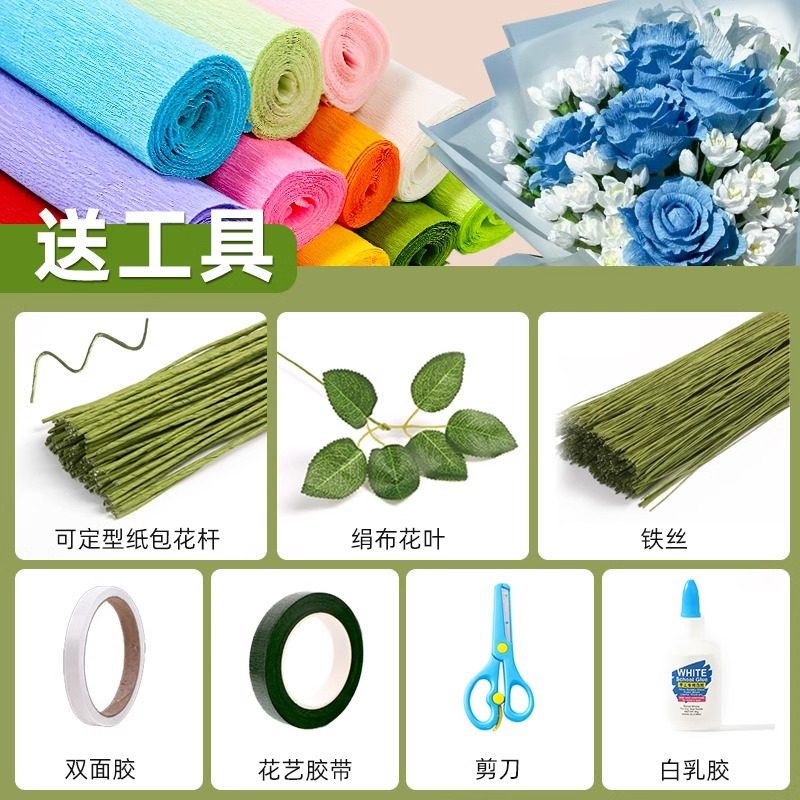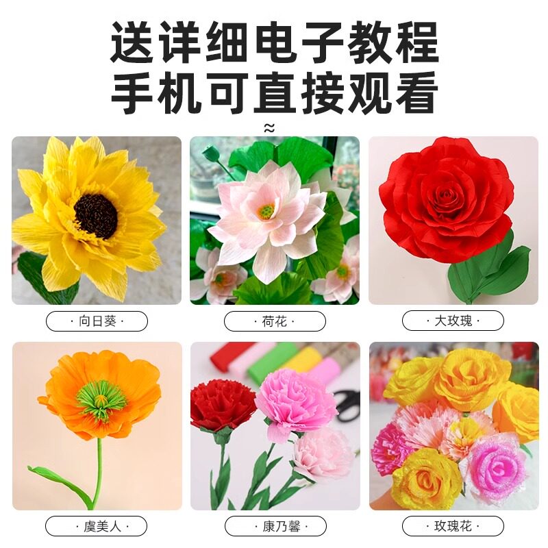 彩色手工皱纹纸褶皱纸立体花手工花材料小学生加厚皱纸折花玫瑰花