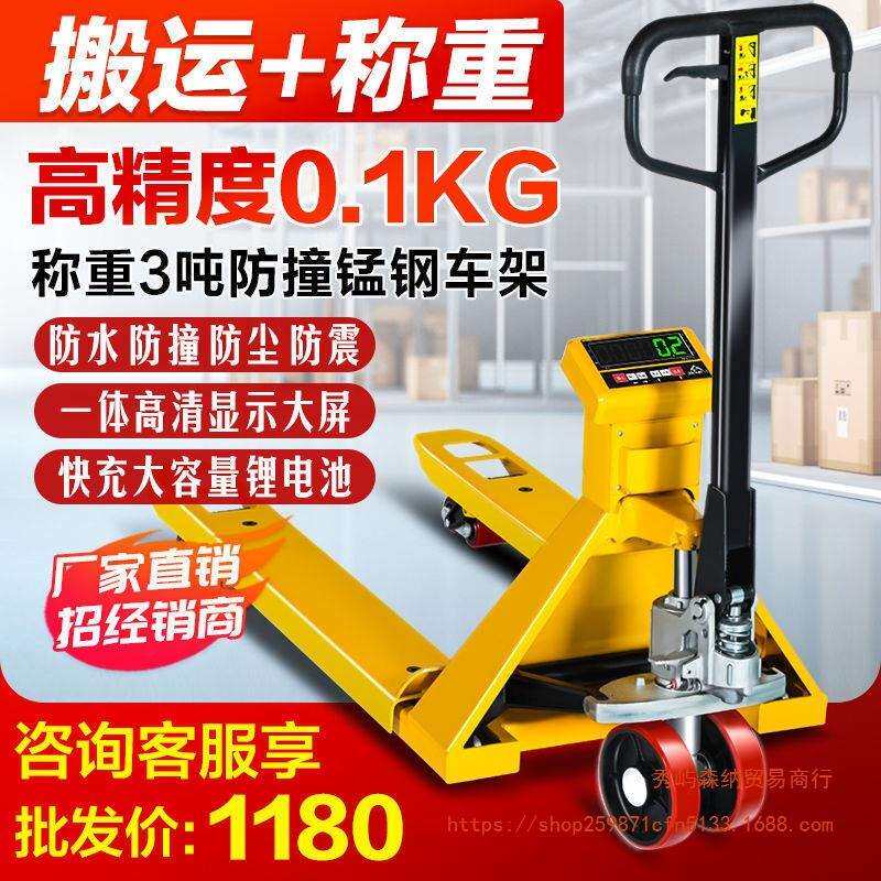 电子叉车秤2吨3吨地牛带称重手动液压托盘搬运车带地磅秤仓储物流