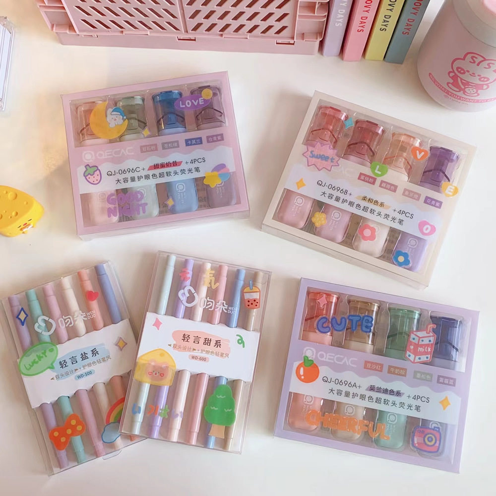 软头荧光笔淡色系学生用划重点双头标记笔大容量手帐水彩笔