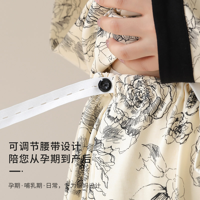 月子服秋季产后孕妇睡衣带胸垫女春秋款长袖怀孕期哺乳家居服套装