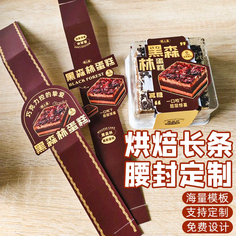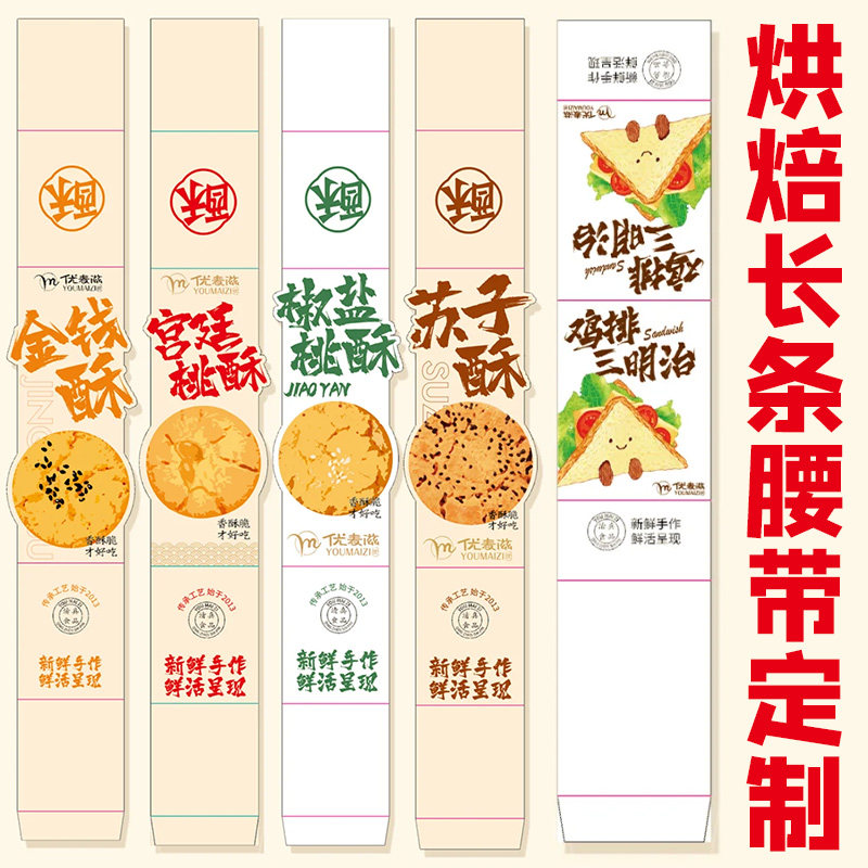 烘焙腰封设计甜品店三明治面包蛋糕外卖打包盒长条封口贴定做轻食月饼蛋黄酥礼盒装饰包装广告宣传封套制作订