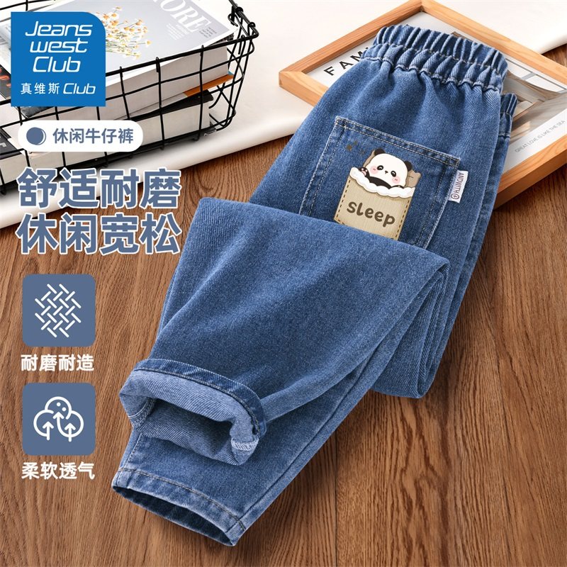 真维斯club女童春秋款牛仔裤2025新款儿童春季直筒休闲裤子大童装