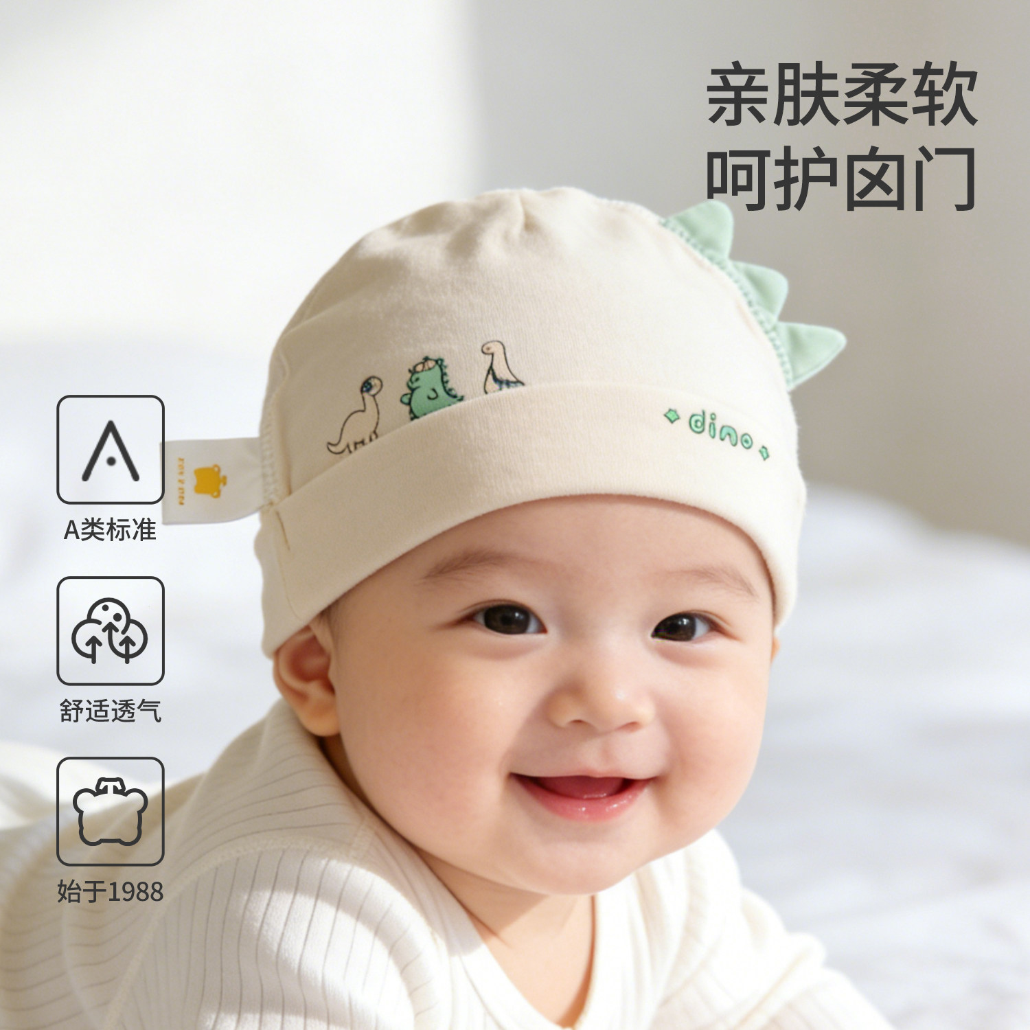 婴儿开春帽子薄款新生儿小月龄胎帽婴幼儿春夏天男宝宝a类护卤门