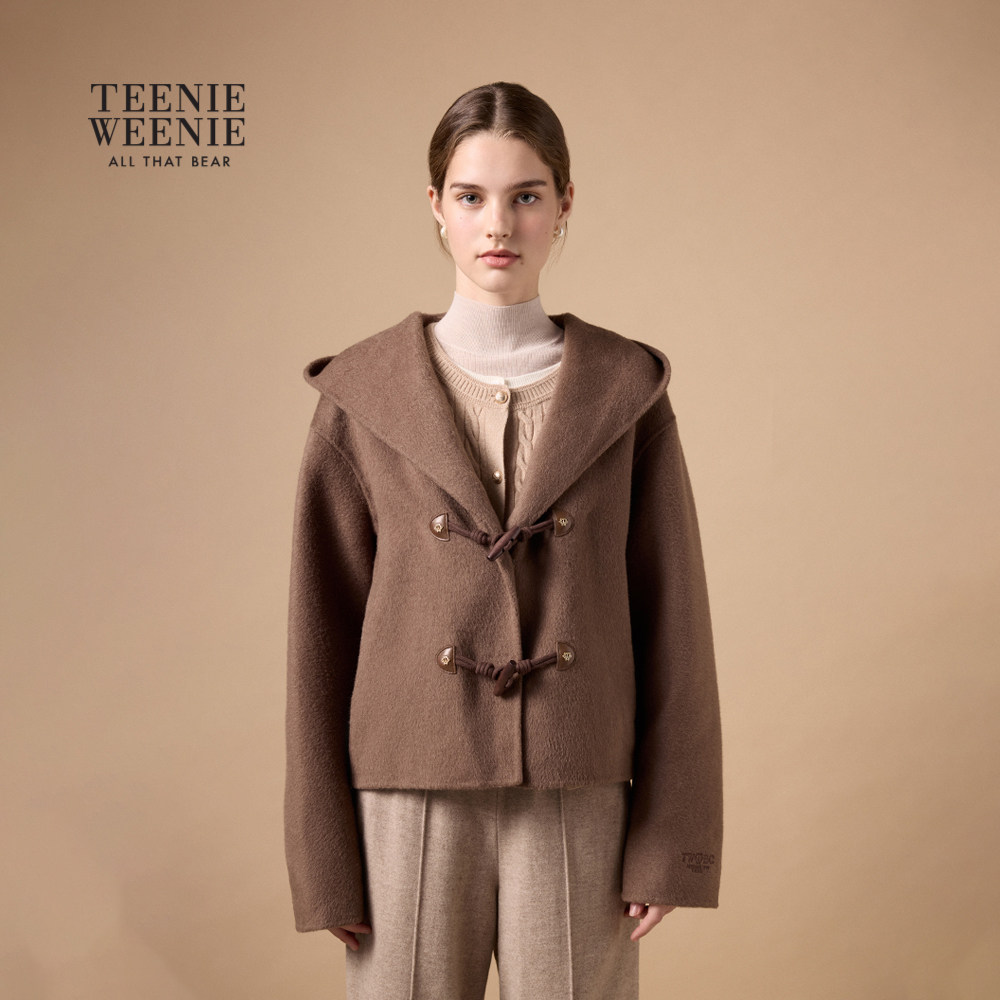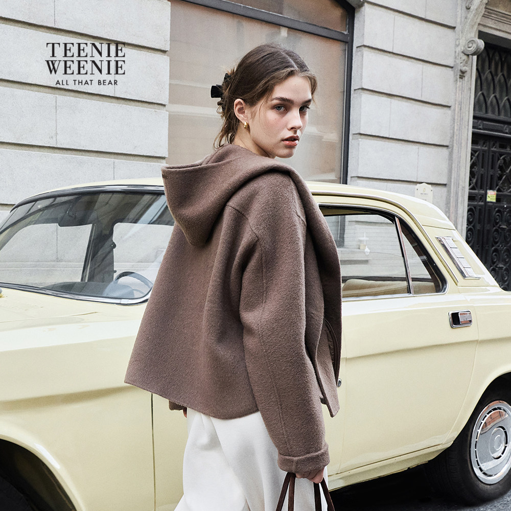 【初代千金牛角扣】TeenieWeenie小熊女25冬绵羊毛斗篷毛呢大衣