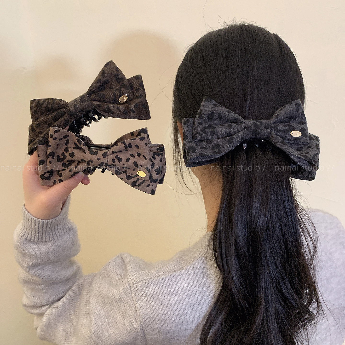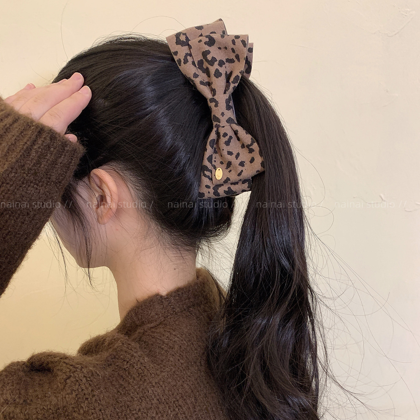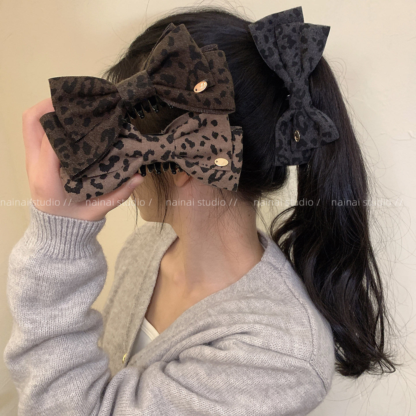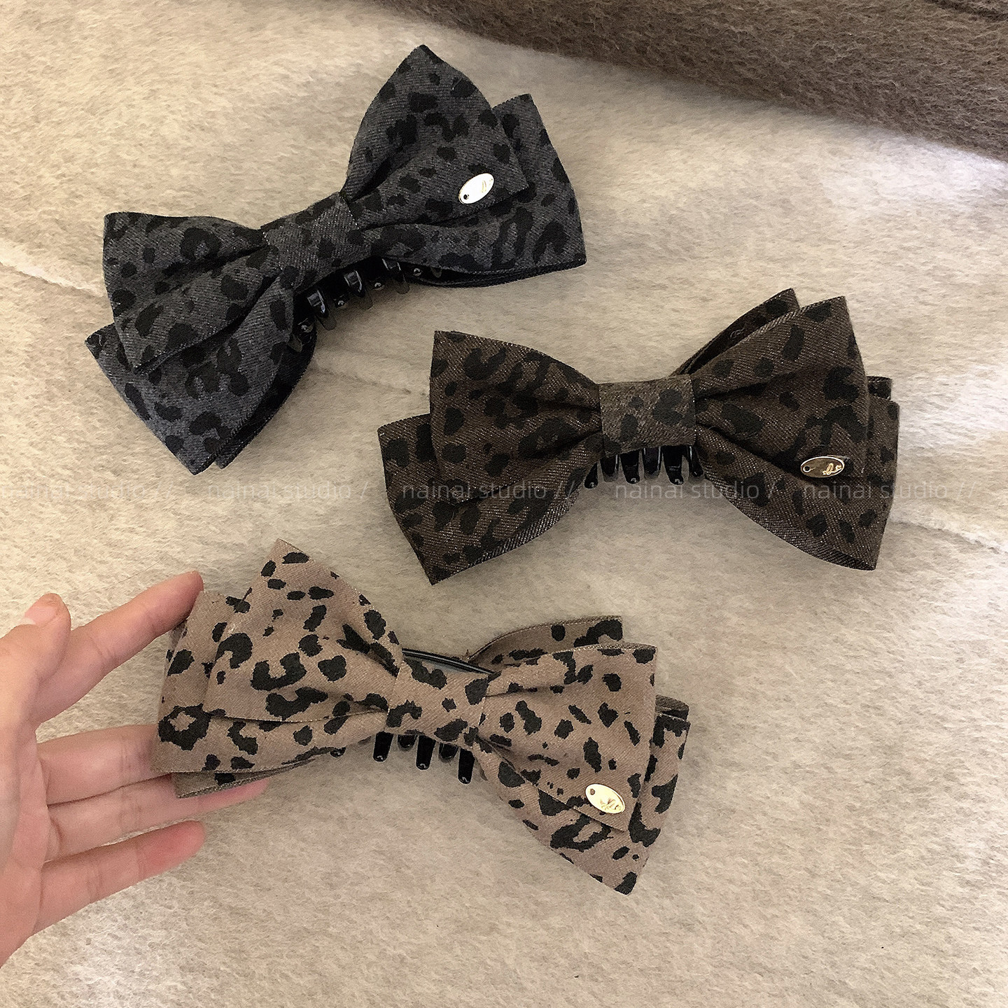 豹纹小金标竖夹~美拉德风后脑勺盘发香蕉夹半扎发夹蝴蝶结发饰女