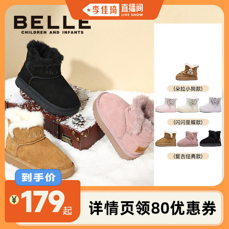 【李佳琦直播间】百丽童鞋儿童雪地靴加绒水晶公主鞋冬季保暖棉靴