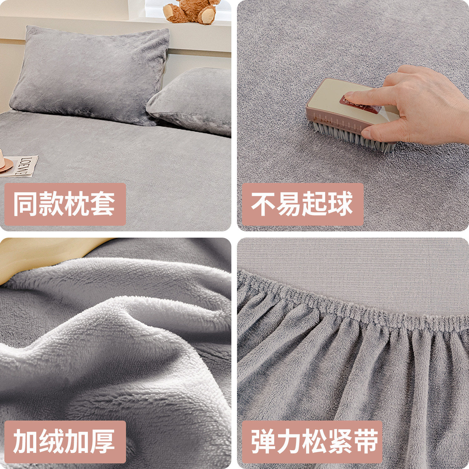 牛奶绒2026新款加厚保暖纯色治愈床笠套件防尘防滑水晶绒床单枕套