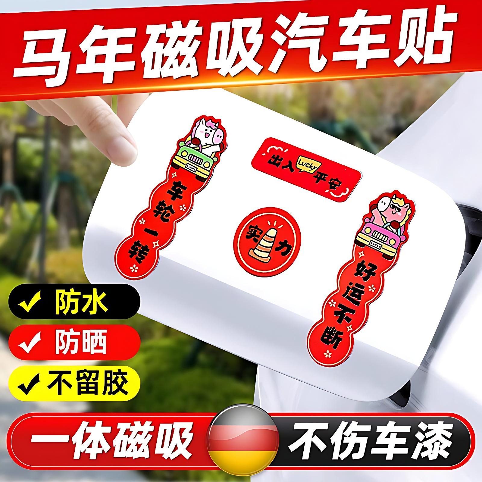 汽车磁吸小对联2026新款马年新年春节个性创意车贴过年迷你装饰贴
