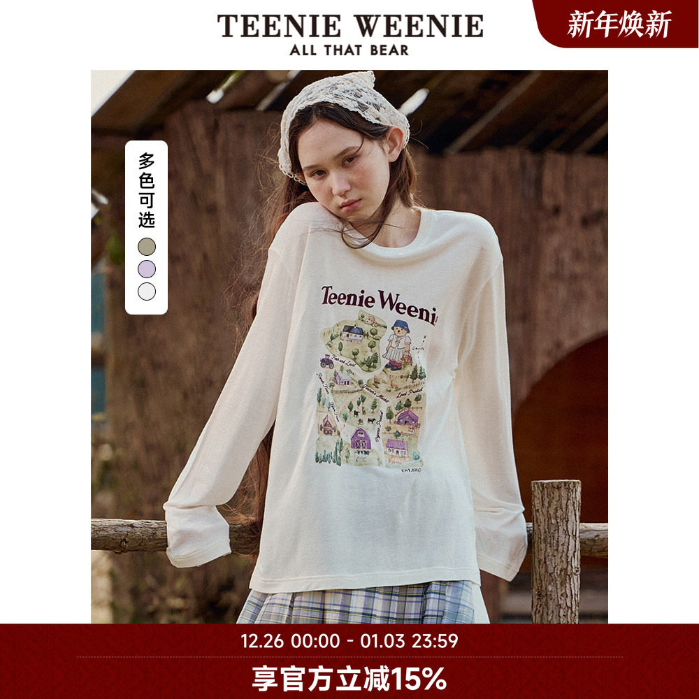 TeenieWeenie小熊奥莱长袖T恤2025夏季新款甜美清新田园印花上衣