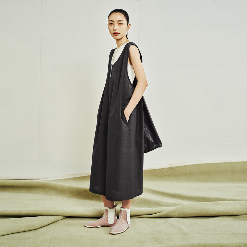 【LESSxSamuel】春夏宽松无袖连衣裙套头U型领气质长裙2O7G13500
