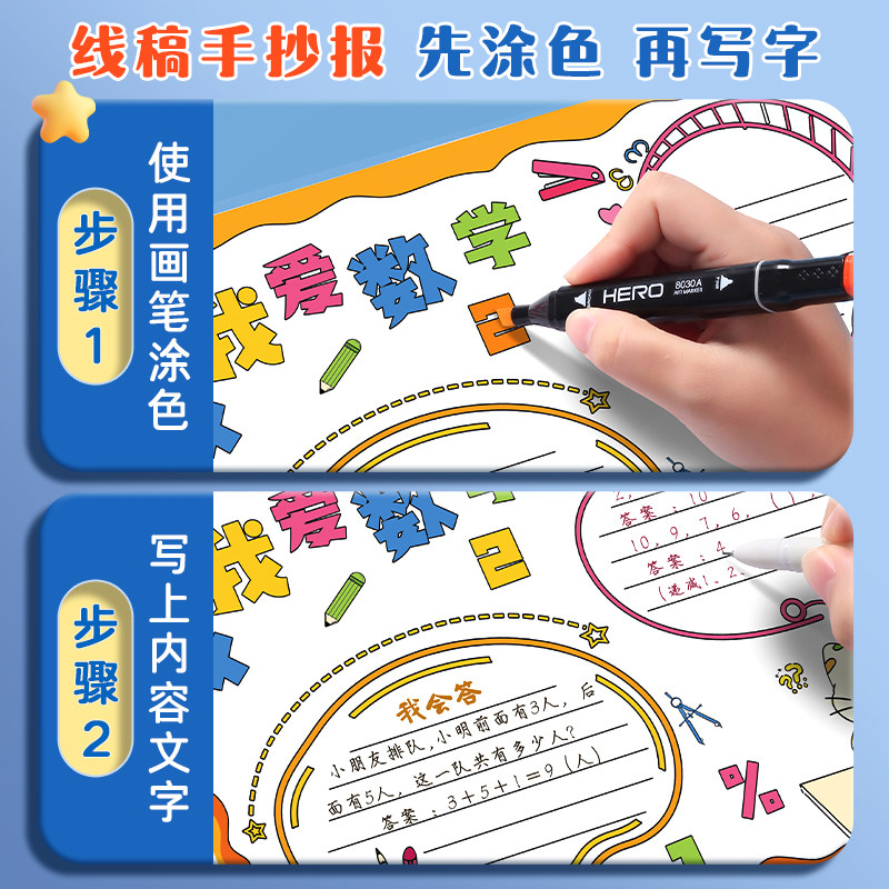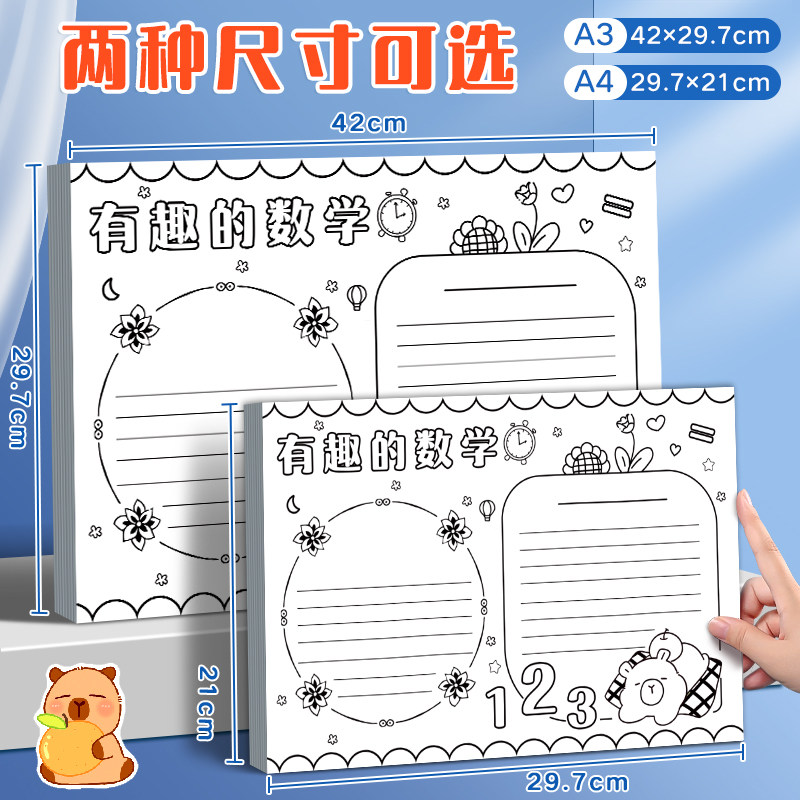 数学手抄报模板大全语文英语阅读小报小学生a3手抄报专用纸A4端午节小学一年级幼儿园六一儿童8k读书线稿神器