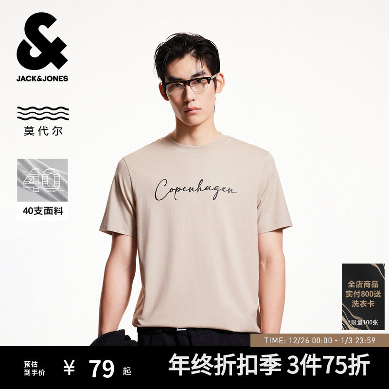 【舒适莫代尔】杰克琼斯男装2025年秋季新款纯色男士短袖T恤字母