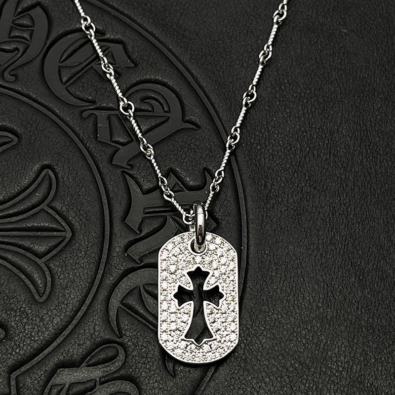 ODEK白金色中号满钻镂空十字架军牌项链男女欧美个性吊坠气质时尚