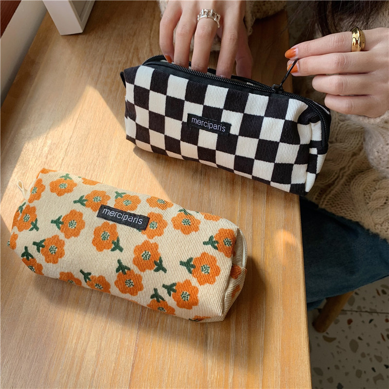 佑木包袋ins复古文艺笔袋灯芯绒清新文具盒大容量学生随身化妆包