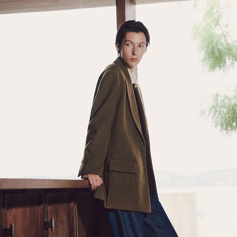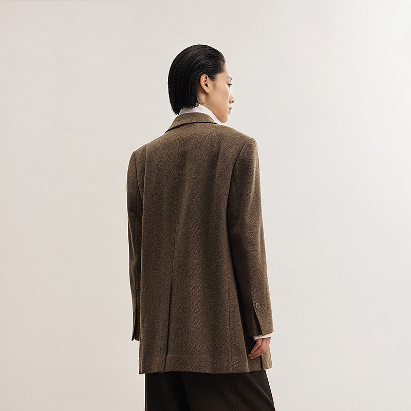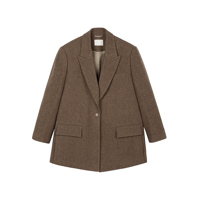 LESS冬季毛呢西装女绵羊毛一粒扣西装领A型老钱风外套2O0812870