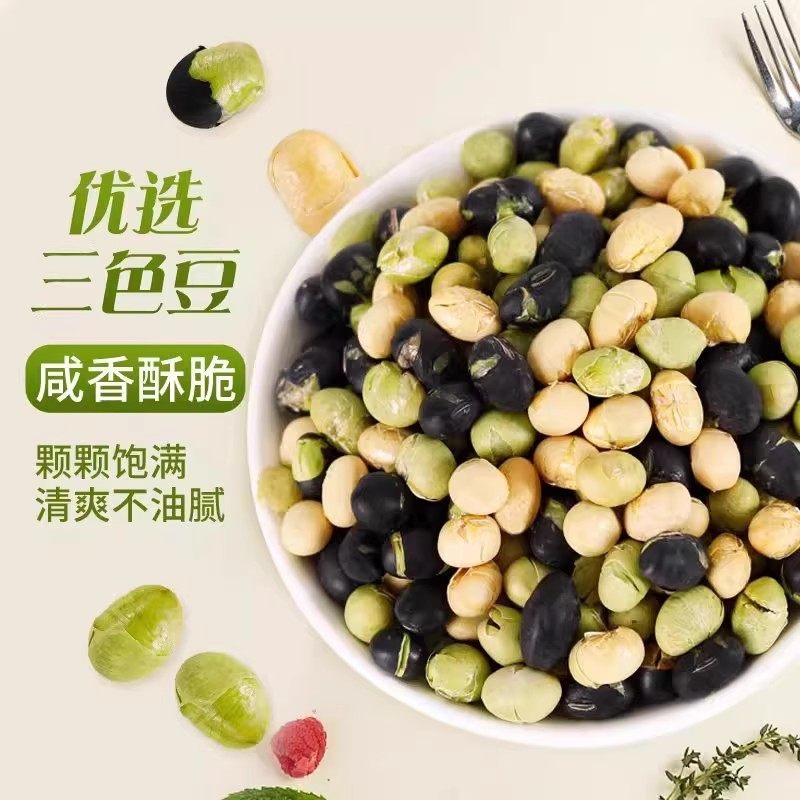 黑豆青豆黄豆混合三色豆炒熟香酥无油干炒盐焗开袋即食绿芯