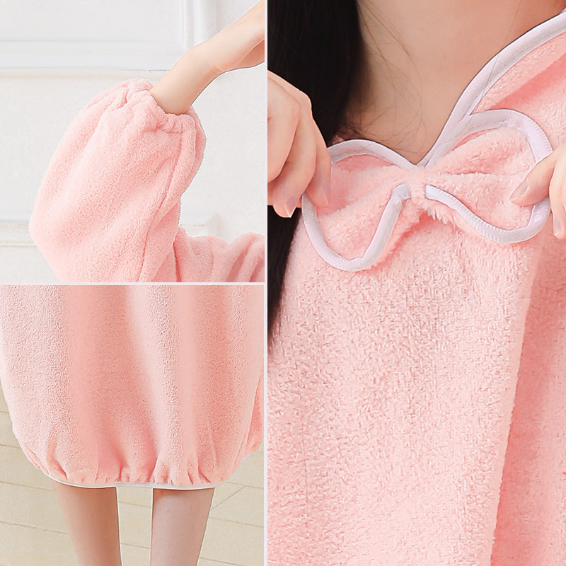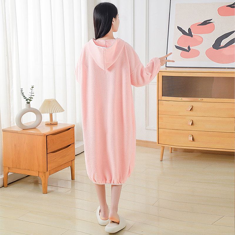 秋冬浴袍可穿浴巾女家用珊瑚绒吸水柔软速干浴裙洗澡睡袍睡衣连帽