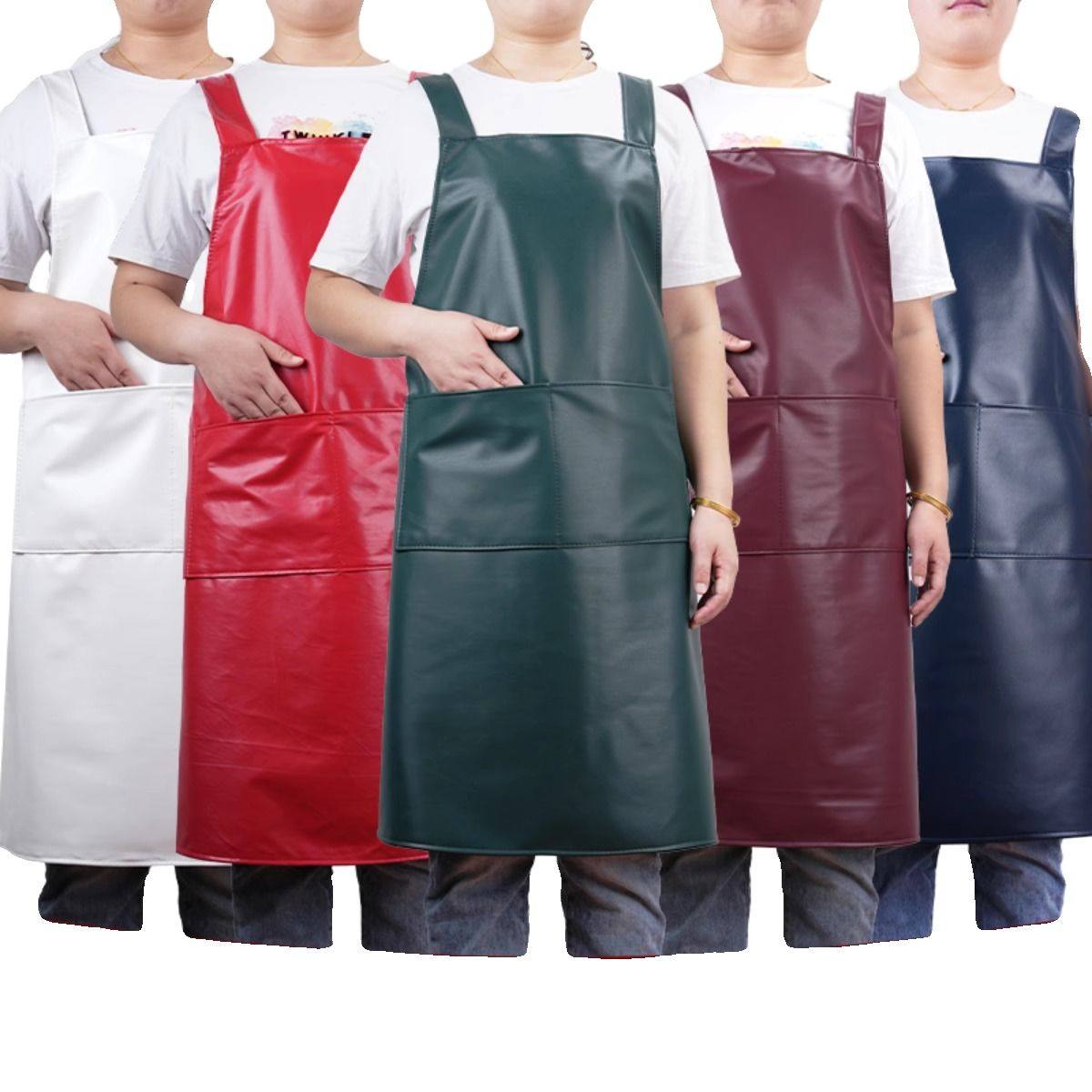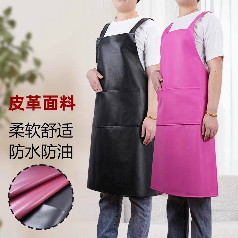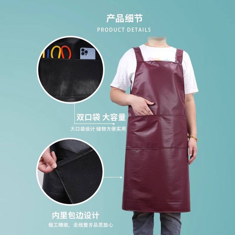 背带围裙防水防油软皮过年厨房耐磨工作服男女家用PU皮革围腰厨师