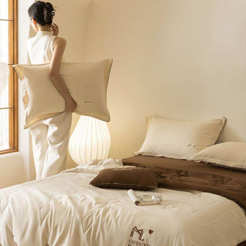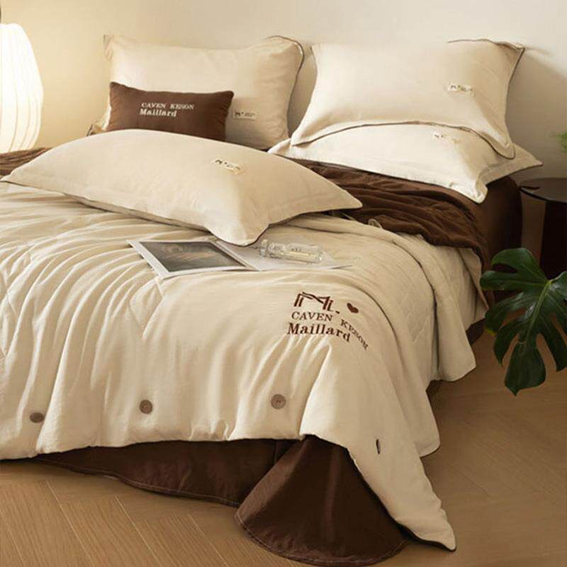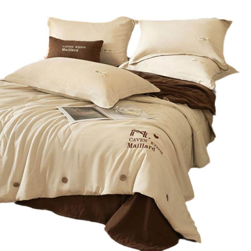 爆品夏凉被水洗云朵绵四件套奢美刺绣美拉德风夏被四件套床笠