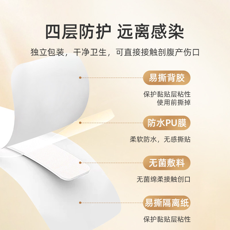 婧麒剖腹产防水贴孕产妇术后洗澡伤口贴防水透气医用EO灭菌20片装