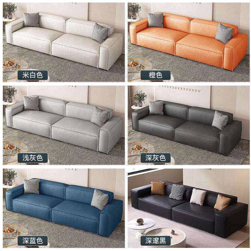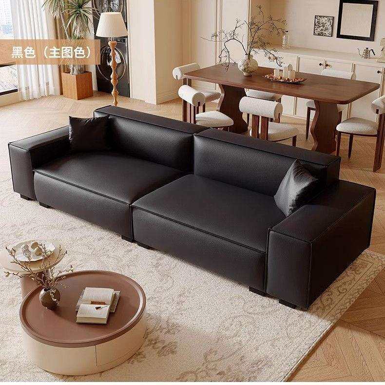 意式生态皮艺复古风沙发豆腐块奶油风沙发