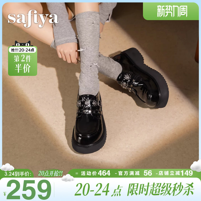 索菲娅2026春季新品学院风百搭休闲铆钉皮带扣魔术贴乐福鞋小皮鞋