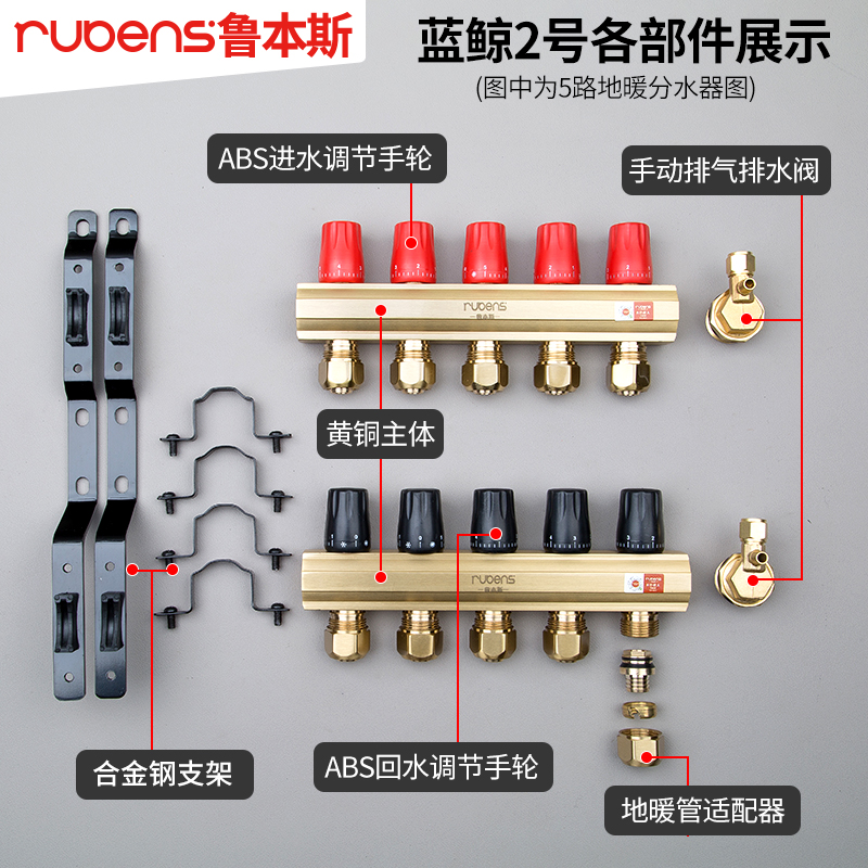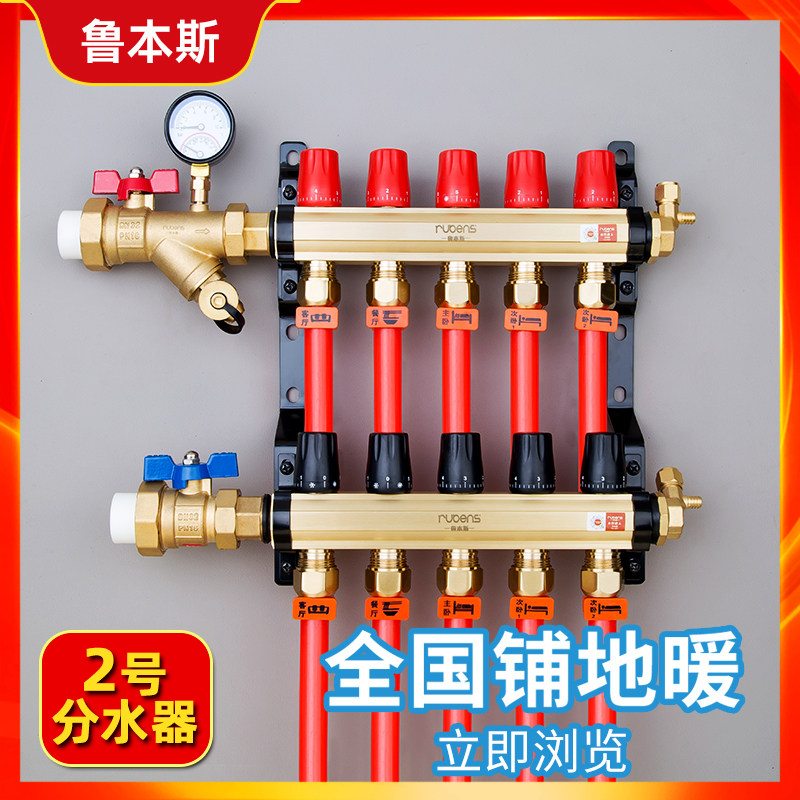 鲁本斯地热暖管分水器家用全铜一体大流量暖气片水暖温控球阀门
