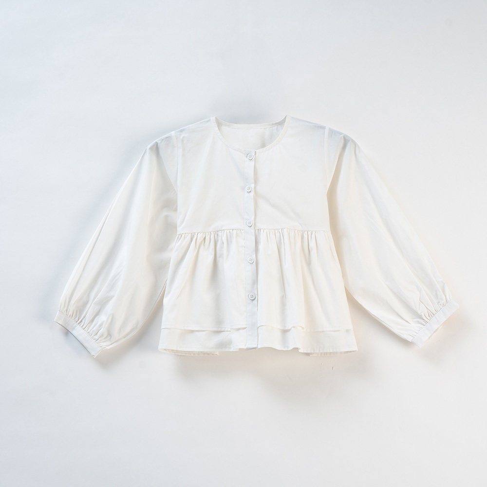 MAMC灯笼袖暗纹白色衬衫女2024新款修身独特小众设计感一字肩上衣