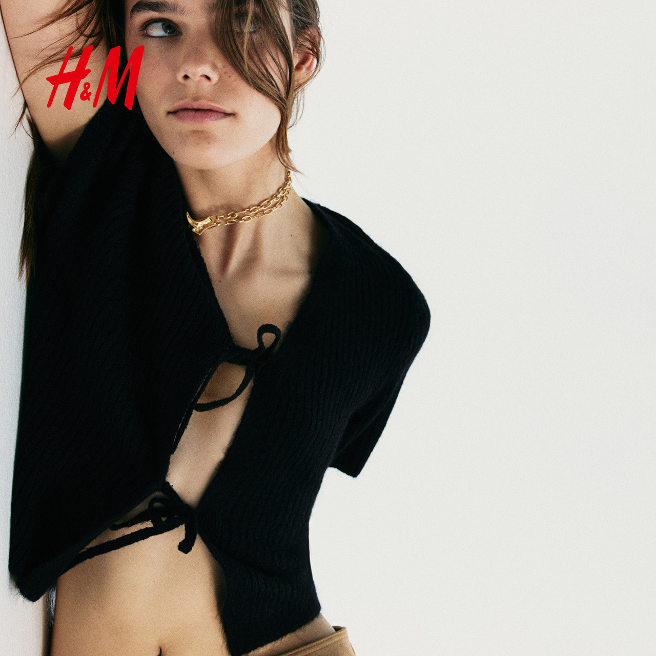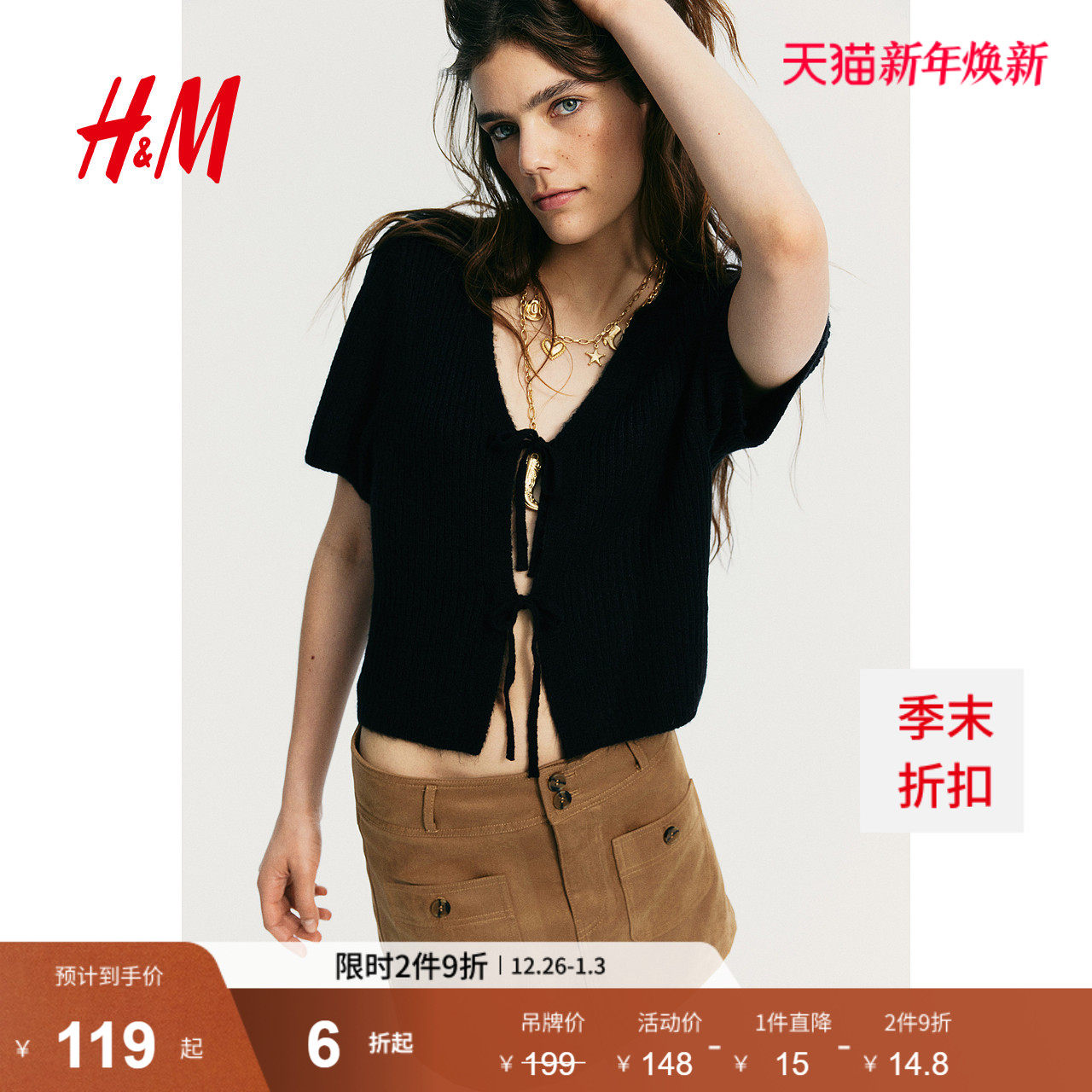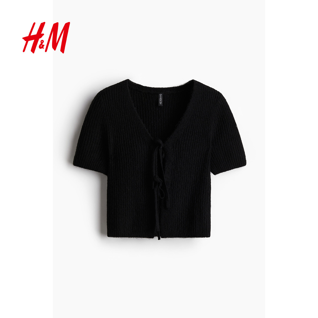 HM女装2026年春季新款系带设计罗纹针织上衣1269538