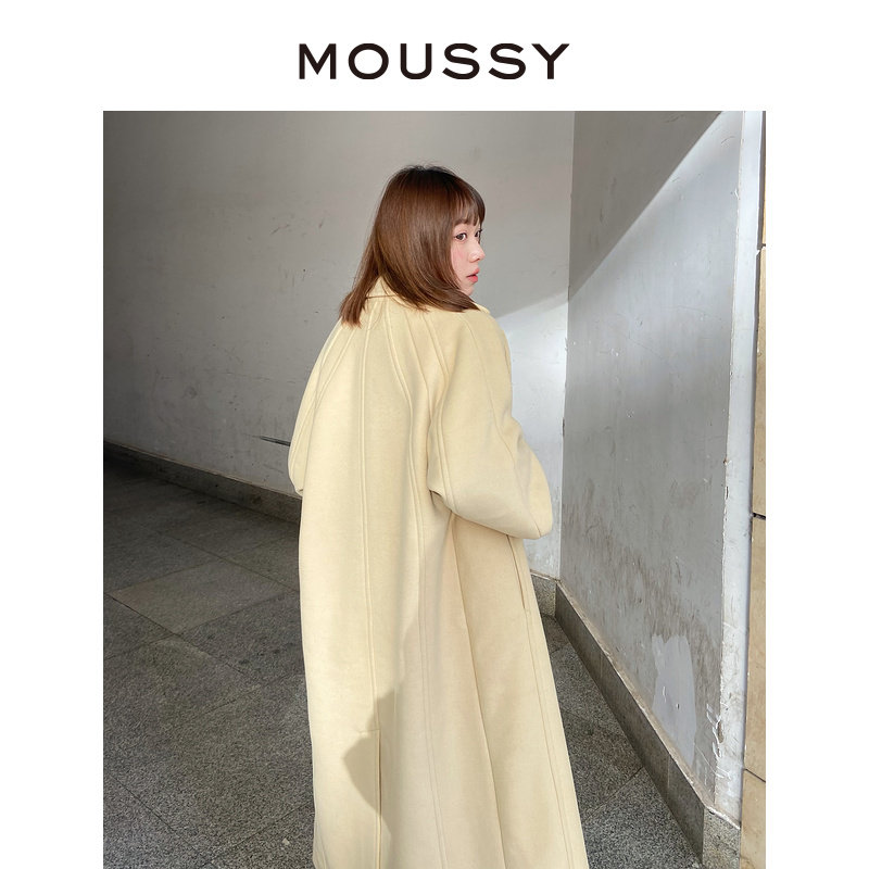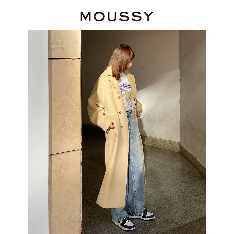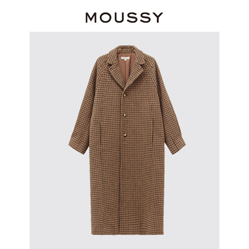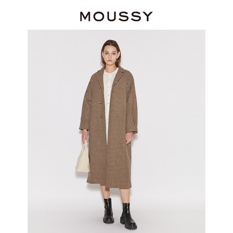 MOUSSY 冬季新品简约风廓形长款格纹毛呢大衣女C28GA230-0020