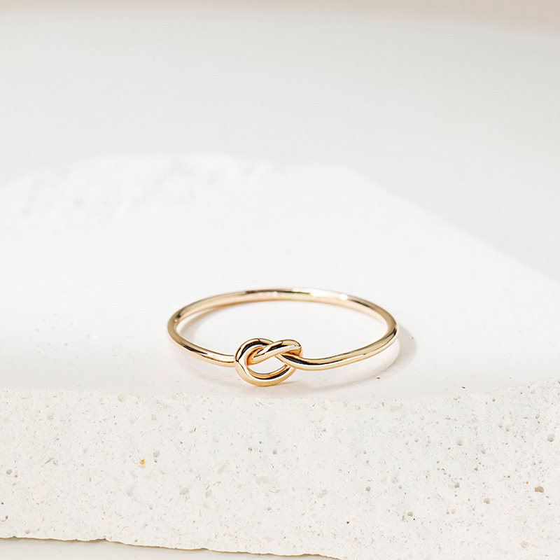 14K包金手编织爱心形食指戒指冷淡风 闺蜜女chic戒指细 欧美极简
