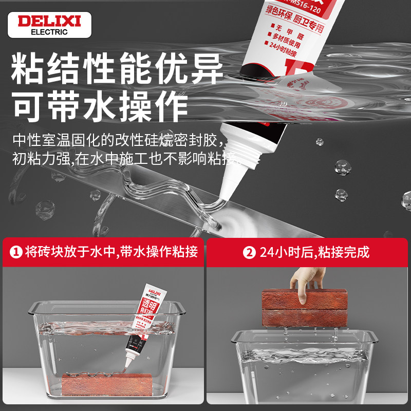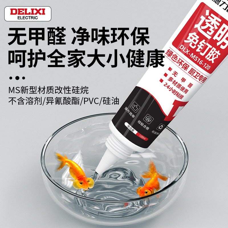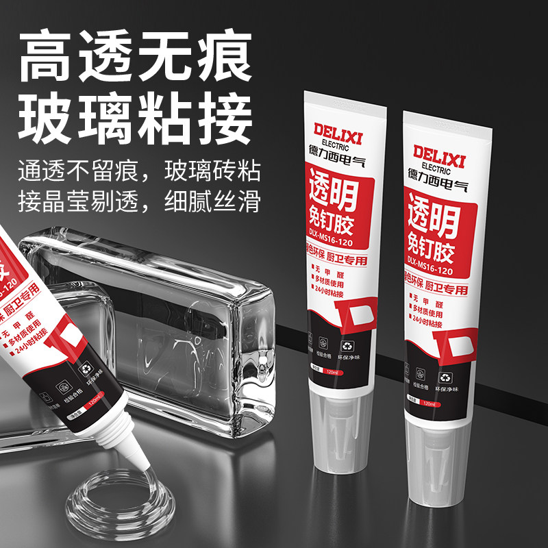 德力西强力透明免钉胶多功能高粘度粘得牢防水防霉免打孔家用卫生间置物架挂钩金属踢脚线瓷砖贴墙面镜子专用