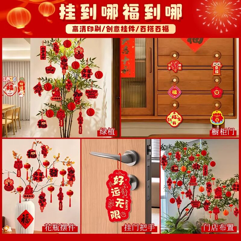 马年绿植树上福字装饰挂件2026新年过年氛围布置春节喜庆春字挂饰