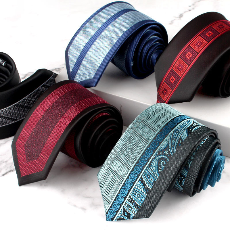 时尚休闲韩版窄定位花纹领带男士正装商务手打領帶6cm灰红蓝棕色