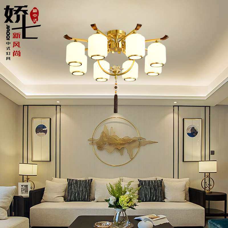 新中式吊灯全铜客厅吸顶灯现代简约餐厅卧室书房禅意吸吊两用灯具