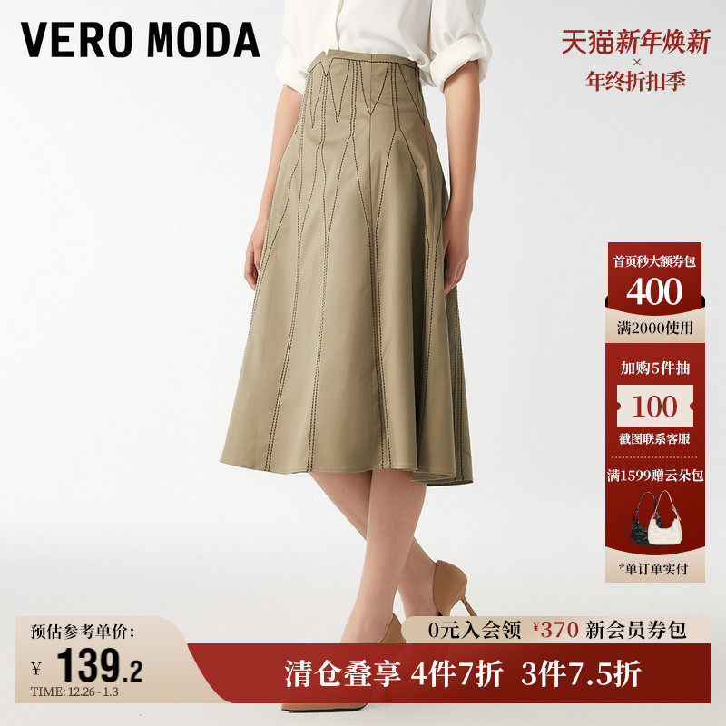 Vero Moda奥莱半身裙秋冬清仓A字中长迷笛高腰简约优雅通勤女流行