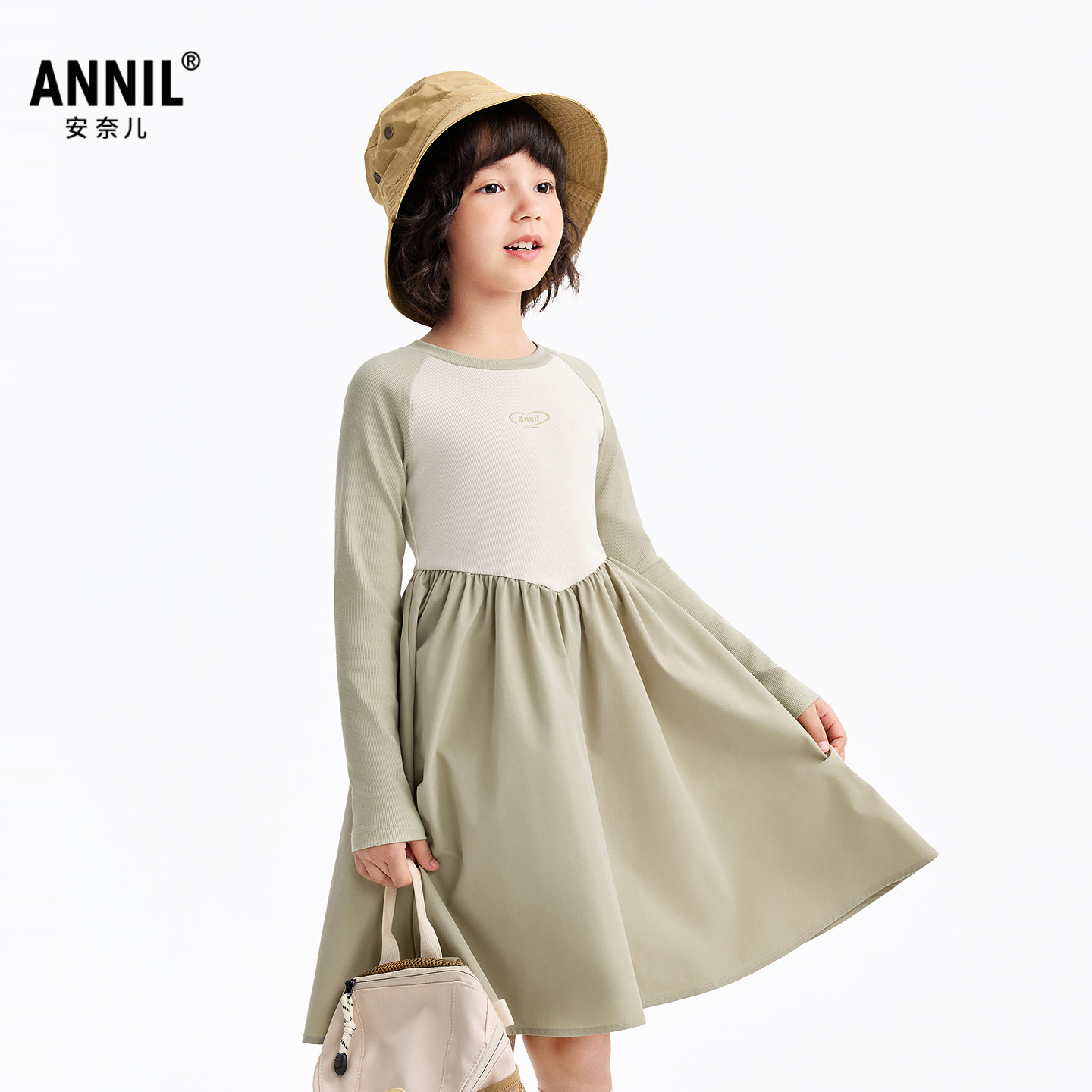安奈儿童装女童长袖连衣裙2026春新款校园轻运动风时尚休闲裙子