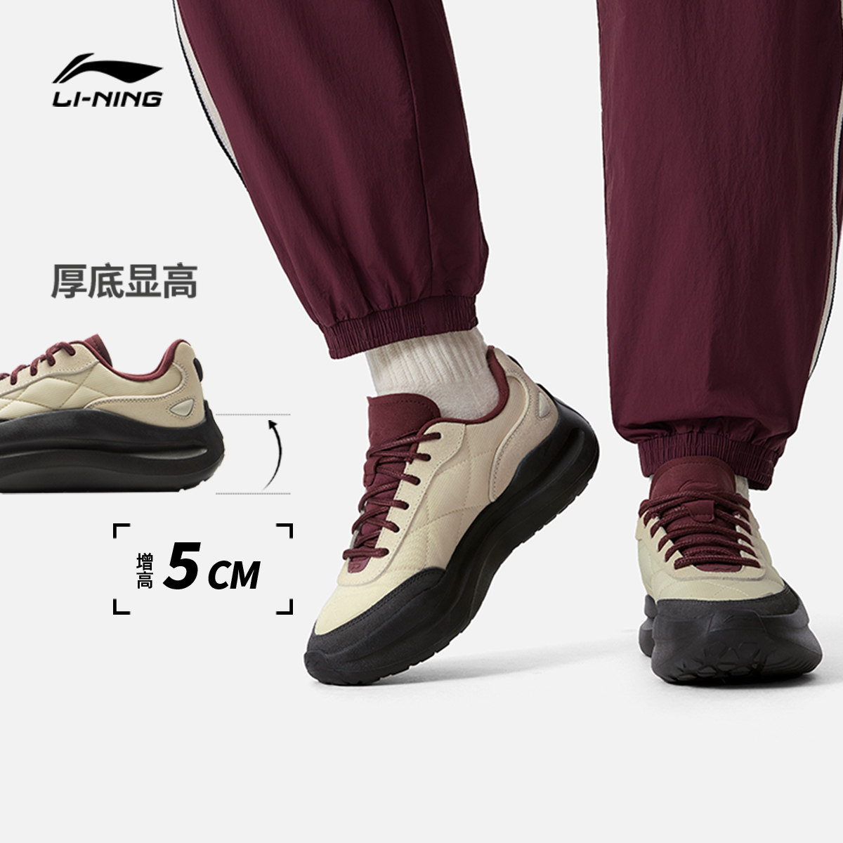 李宁红糖丨休闲鞋男鞋冬季新款复古老爹鞋减震回弹厚底增高运动鞋