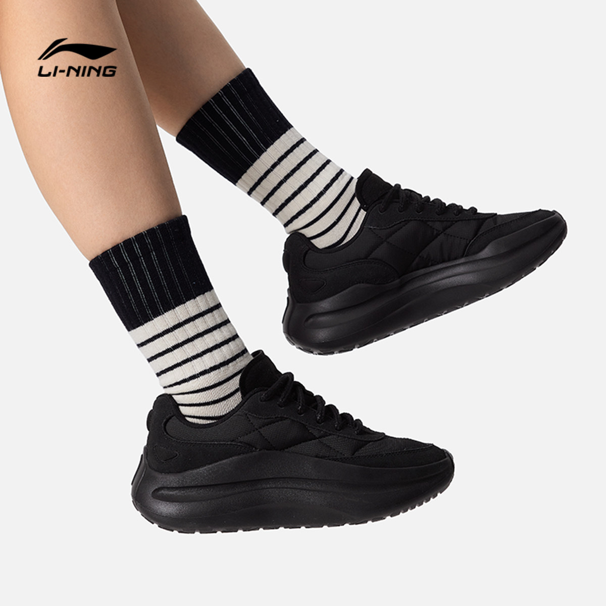 李宁云浪 lace丨休闲鞋女鞋舒适一脚蹬厚底增高潮流健步鞋运动鞋