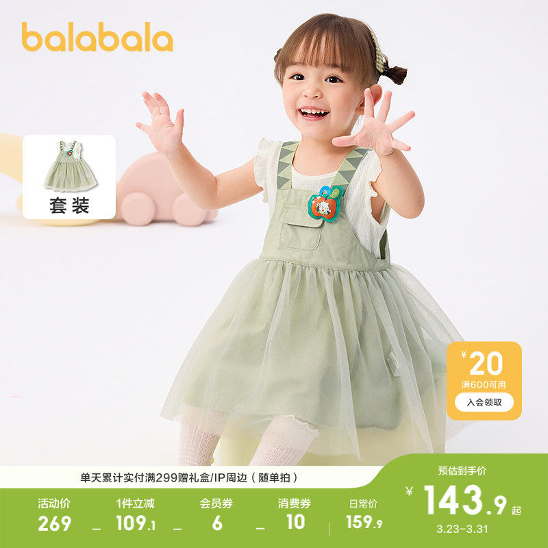 巴拉巴拉童装女童夏装2026休闲婴儿短袖背带裙套装甜美潮时尚百搭