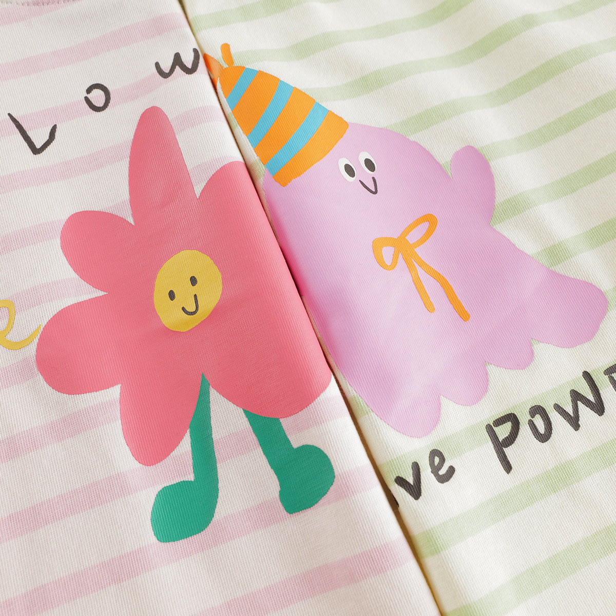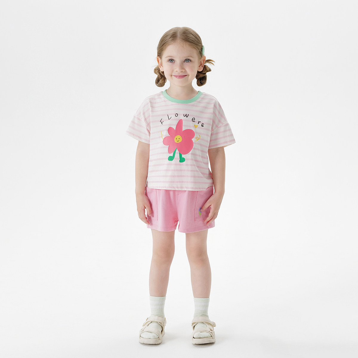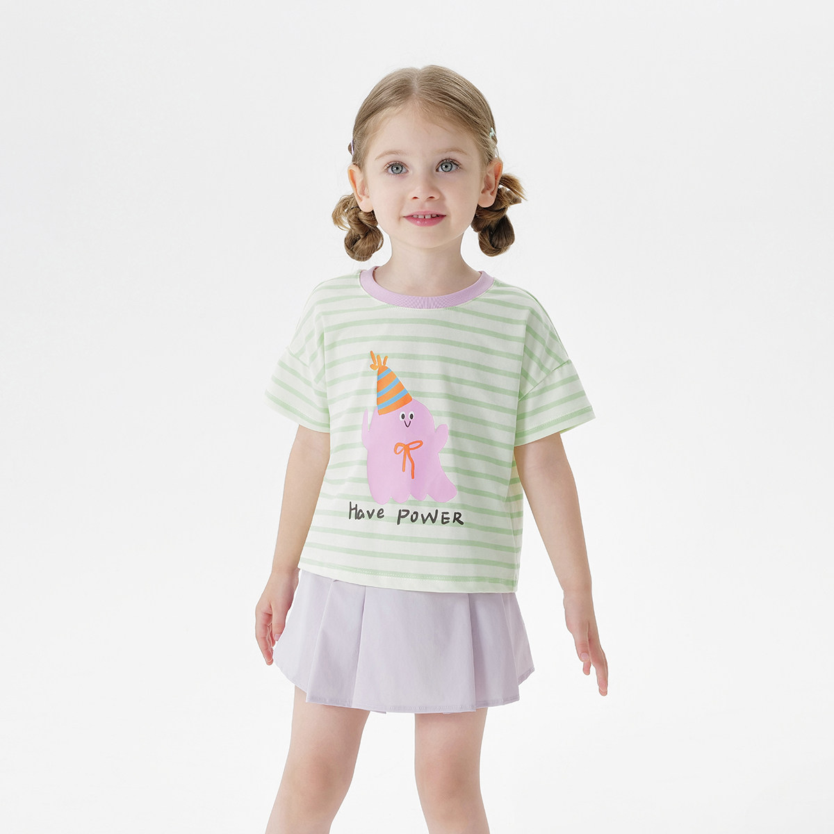 【凉感透气】马克珍妮女童卡通条纹短袖T恤 宝宝夏装新款550769