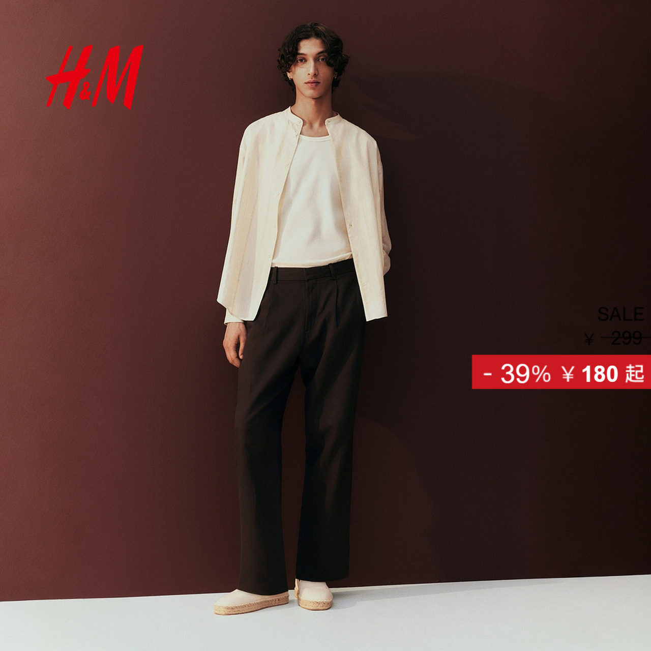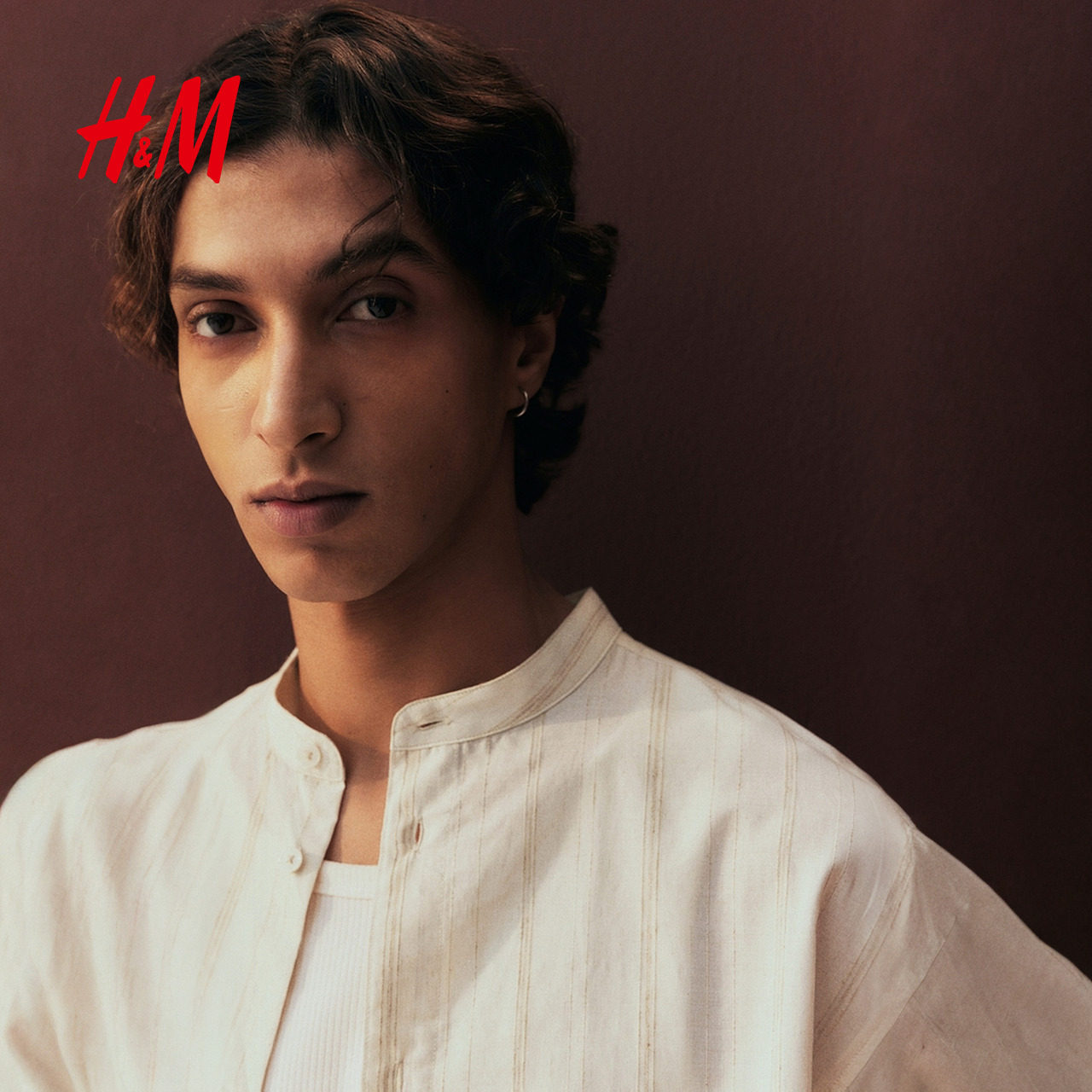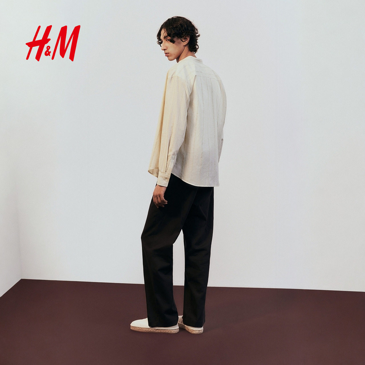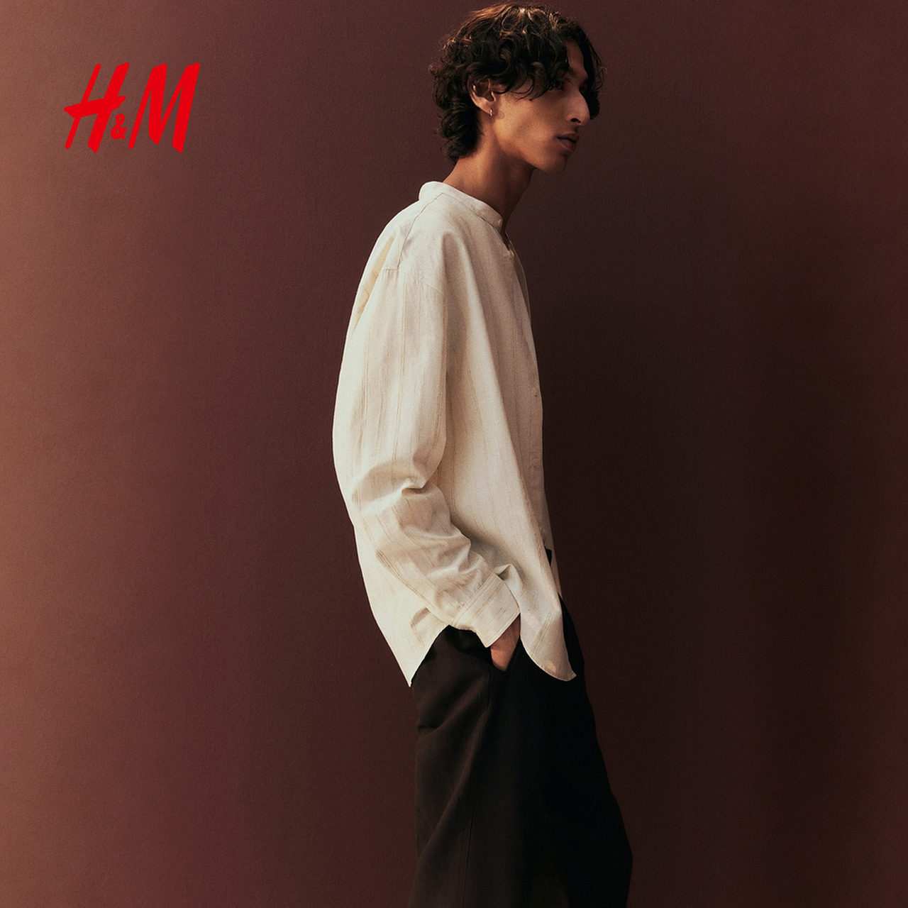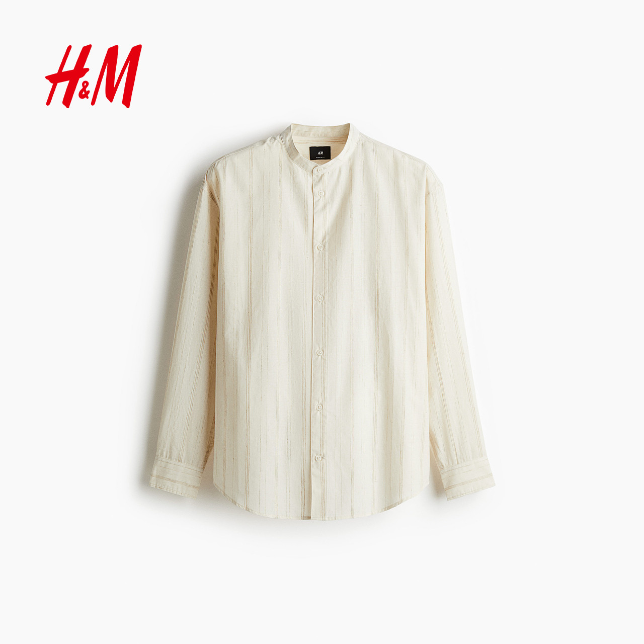 HM2025冬季新款男装标准版型亚麻混纺中式领衬衫1277533