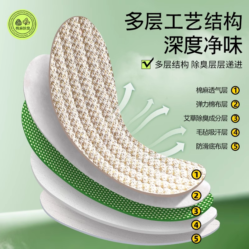 艾草防臭亚麻鞋垫男女吸汗透气除臭留香皮鞋汗脚专用软底舒适冬季