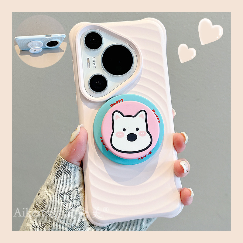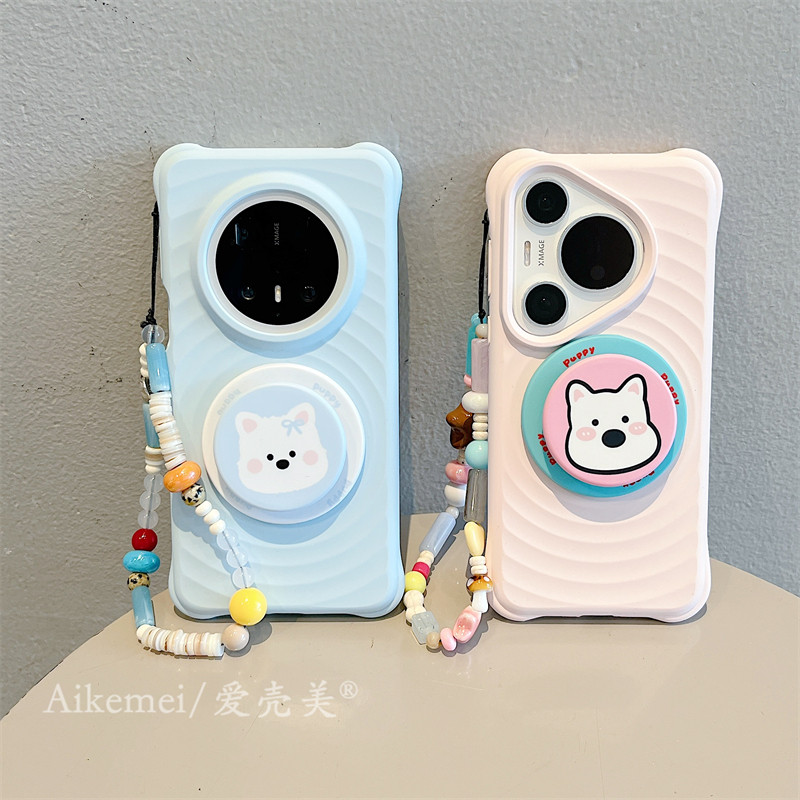 适用华为mate70pro+手机壳纯色波漾纹mate80液态硅胶可爱小狗Mate60pro磁吸支架链条挂绳pura70pro全包防摔女